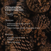 For your skin, Cedarwood acts as a gentle exfoliant, sloughing away dead cells and helping manage breakouts and refractory acne.Cedarwood is also believed to possess anti-inflammatory and antiseptic qualities, making it ideal for soothing irritated or acne-prone skin. Moreover, its astringent properties are a boon to skin health as it tightens pores, manages dryness, and reduces instances of skin peeling.