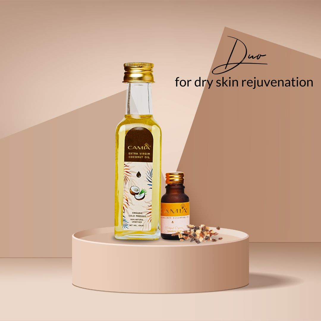 Mix 10 ml of CAMIA Frankincense Essential Oil with 250 ml of CAMIA Cold-Pressed Coconut Oil.