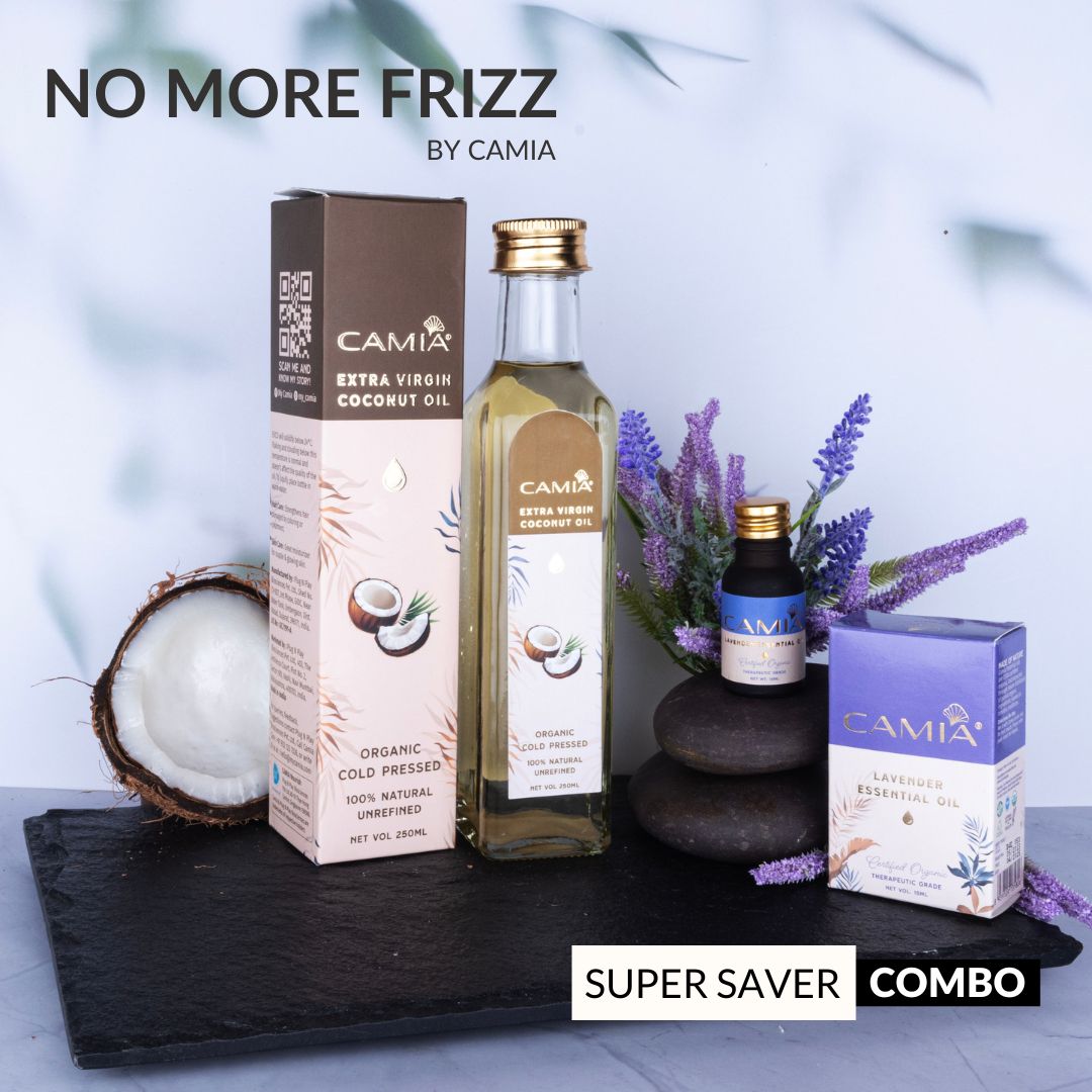 Mix 10 ml of CAMIA Lavender Essential Oil with 250 ml of CAMIA Cold-Pressed Extra Virgin Coconut Oil.