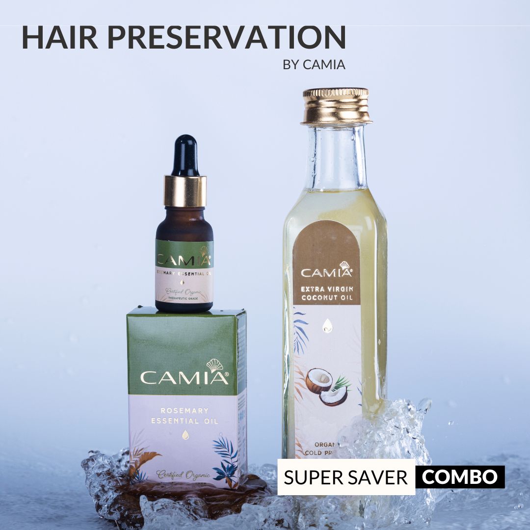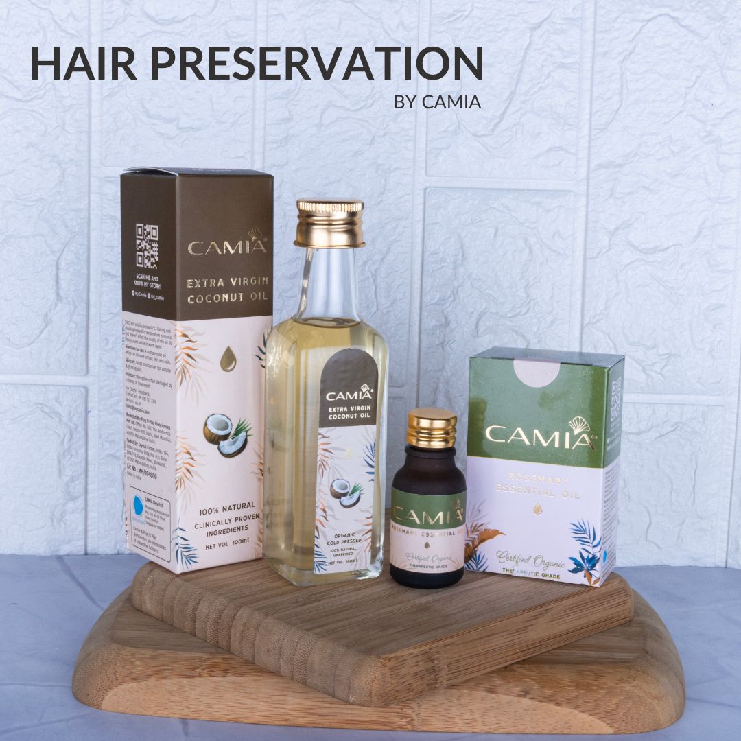 Mix 10 ml of CAMIA Rosemary Essential Oil with 250 ml of CAMIA Cold-Pressed Coconut Oil.