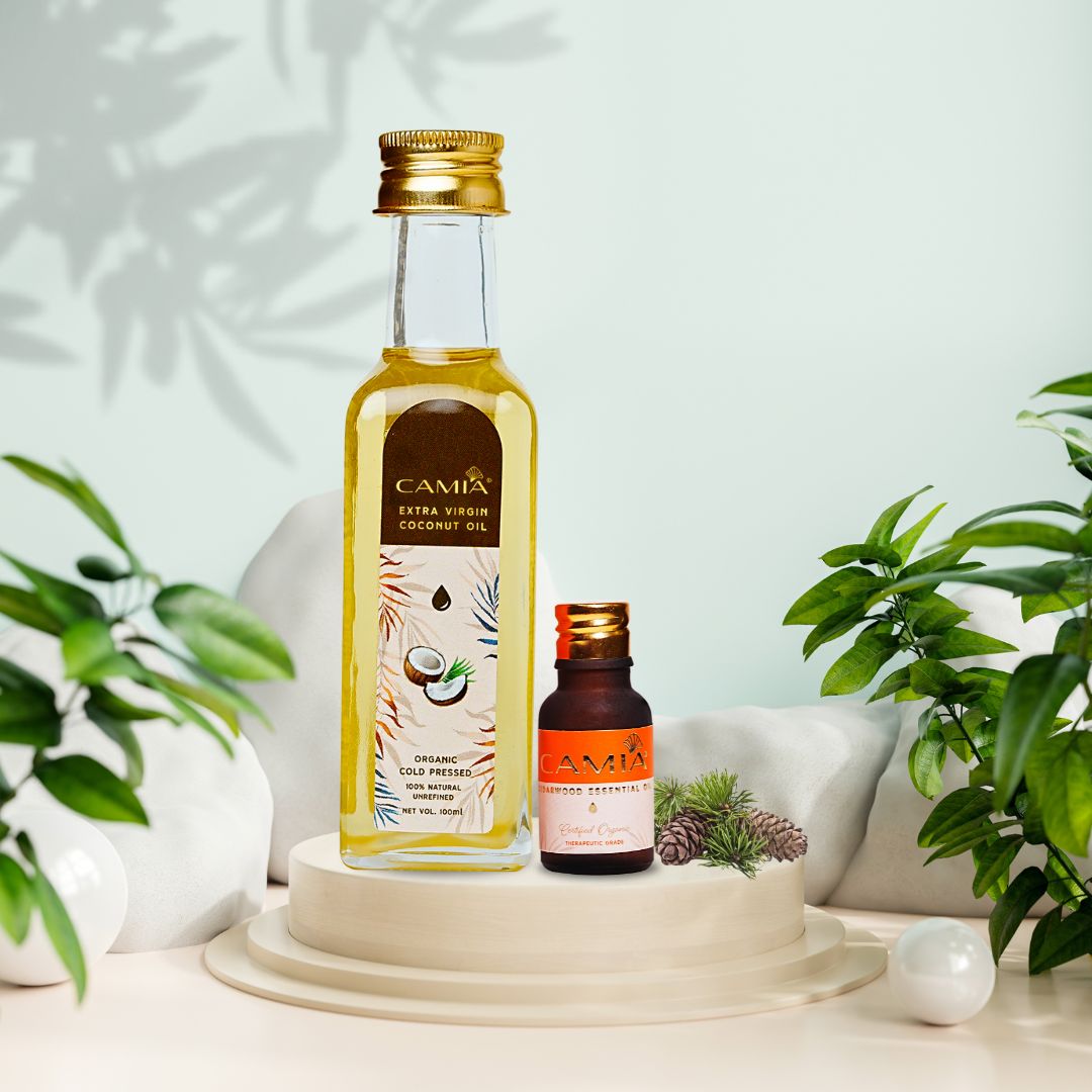 Discover the earthy embrace of CAMIA USDA Certified Organic Cedarwood Essential Oil, extracted through 100% steam distillation for purity and maximum potency. With its calming, woody aroma, Cedarwood is not only a favourite in aromatherapy but also a time-tested remedy for skin clarity and hair vitality.
